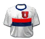Su primer uniforme fue una casaca blanca con una franja en el pecho con los colores rojo y azul de la Universidad, el pantalón corto azul y medias blancas. Posteriormente se oficializa la camiseta de color rojo y con la "U" en el pecho y pantalón corto azul.
