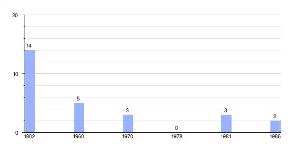 Gráfica de evolución demográfica de Urízar entre 1802 y 1986 |