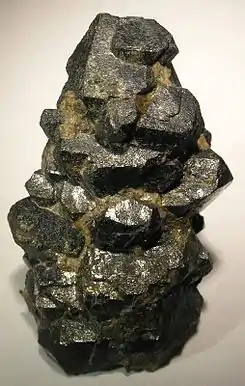 La uraninita es un mineral radiactivo de la clase de los minerales óxidos según la clasificación de Strunz, rico en uranio, siendo la principal mena de este elemento. Su composición química es mayormente dióxido de uranio (UO2),[1][2] pero también contiene trióxido de uranio (UO3), óxido de plomo, torio, y tierras raras. Es una principal mena de uranio la uraninita, dio lugar a su nombre en 1792.