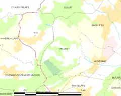 Urcerey es una comuna francesa situada en el departamento del Territorio de Belfort, de la región de Borgoña-Franco Condado.