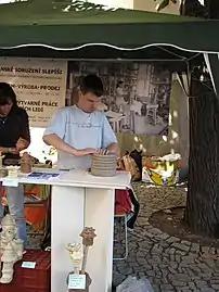 - Urdiendo a mano en la feria de cerámica de Beroun (2011), República Checa.