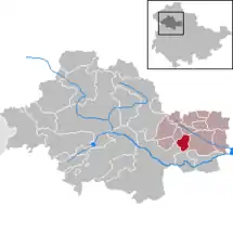 Se encuentra ubicado al norte de la ciudad de Eisenach, al noroeste de Erfurt, la capital del estado.