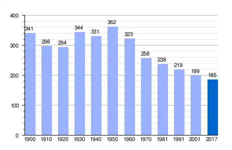 Población de derecho (1900-1991) o población residente (2001) según los censos de población del INE.[3] Población según el padrón municipal de 2017 del INE. |