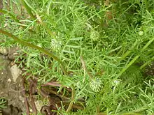 Es una planta anual que alcanza un tamaño de hasta 30-45 cm de altura. Las hojas son predominantemente bipinnatisectas (dos veces divididas o lobuladas) y varían entre 20 y 50 mm de longitud. Los lóbulos son lineales. La inflorescencia son cabezas de flores solitarias con un diámetro de 25 a 50 mm y se encuentran en pedúnculos terminales largos (tallos). Las flores liguladas son de color amarillo o naranja y los floretes del disco central son oscuros. Las brácteas involucrales que rodean la cabeza de la flor son verdes con puntas parecidas al papel, redondeadas. Los frutos están coronados por cinco escamas parecidas al papel blanco y de cerdas. La floración se produce entre agosto y octubre.