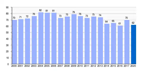 Gráfica de evolución demográfica de Urturi[1] entre 2000 y 2020 |