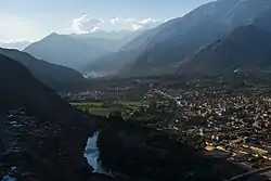La localidad se encuentra asentada en el valle del río Urubamba, también conocido como Vilcanota, y al pie de los nevados Chicón y Pumahuanca.