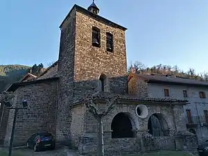 Su estructura presenta una primera construcción protogótica de inicios del siglo XIII a la que se van añadiendo otros elementos como un pórtico en el siglo XVI o, posteriormente, unas naves laterales con características propias del período barroco. Vista desde el exterior sobresale la torre-campanario, típica de las iglesias medievales de la época, así como un pórtico cubierto por bóveda de terceletes del siglo XVI que cobija la portada de medio punto con tres arquivoltas.