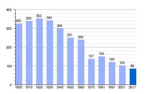 La evolución de la población desde 1900 fue inicialmente ascendente hasta el censo de 1920 que alcanzó el máximo de 352habitantes a partir del cual ha ido descendiendo progresivamente. Desde el año 1900 hasta el año 2017 el descenso ha sido del −7,39%.