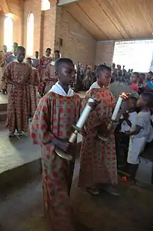 La participación del pueblo se expresa incluso mediante la danza: gestos y movimientos que expresan la participación de todo el cuerpo en la oración, como es habitual en las celebraciones litúrgicas en muchos países africanos,[5][6][7] y que no debe confundirse con lo que en la cultura europea se llama "bailar", como indicó el antiguo papa Benedicto XVI.[8]