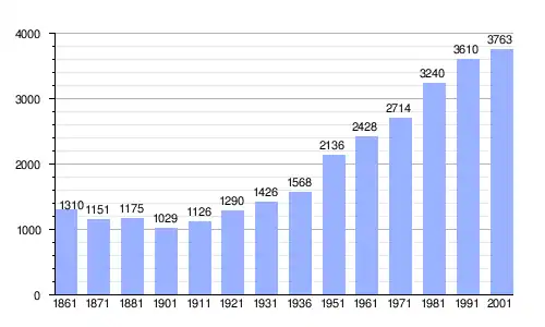 Gráfica de evolución demográfica de Ussana entre 1861 y 2001 |