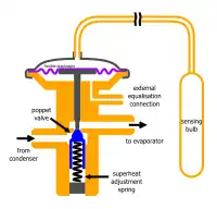 La válvula de expansión es un tipo de dispositivo de expansión, (un elemento de las máquinas frigoríficas por compresión) en el cual la expansión es regulable manual o automáticamente.