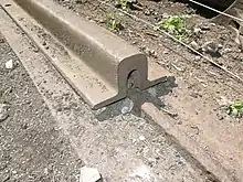 Una sección a través de una viga longitudinal, con el raíl en forma de puente en la parte superior