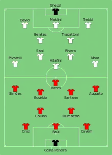 Para el equipo rossonero ganar un título europeo era una deuda pendiente desde 1958, cuando había perdido la final ante el Real Madrid de Di Stéfano. La directiva milanista, en aras de motivar lo más posible a su plantel, ofreció un premio de 500 liras (1400 dólares de la época) a cada jugador si se lograba conquistar el título. El partido se jugó en el estadio de Wembley en Londres y terminó 2-1 a favor del cuadro italiano. El encuentro —arbitrado por el réferi inglés Arthur Holland— fue cuesta arriba para Benítez y compañía, tras el gol tempranero (min. 18) de Eusébio (considerado el mejor jugador del mundo), con un remate de 25 metros que sorprendió al meta Ghezzi. Sin embargo, Nereo Rocco sacudió a los once jugadores rossoneri y para el segundo tiempo fue otro el panorama. Soportado por el equilibrio defensivo de Maldini, Benítez y Trapattoni, Gianni Rivera empezó a juntarse con Sani y Pivatelli para armar jugadas de peligro en el arco lusitano, defendido por Costa Pereira. Festeja Benítez —a la derecha— con sus compañeros luego del segundo tanto marcado por Altafini Pero la tarde era para el delantero brasileño José Joao Altafini. Logró anotar los dos goles (mins. 58 y 66, el segundo tras gran corrida individual) para la remontada de rigor, con lo que el triunfo y el título se fueron al norte de Italia. Hasta la fecha ningún otro futbolista peruano logra conseguir un título continental en Europa como lo hizo el gran «Conejo» Benítez, quien fue titular en toda la campaña del equipo.