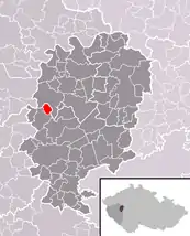 Se encuentra ubicada al noreste de la región, en la cuenca hidrográfica del río Berounka —un afluente izquierdo del río Moldava que, a su vez, lo es del Elba—, y cerca de la frontera con la región de Bohemia Central.[1]