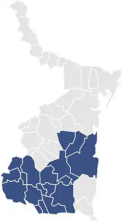 Está formado por los municipios de Abasolo, Antiguo Morelos, Bustamante, Casas, El Mante, Llera, Gómez Farias, González, Jaumave, Jiménez, Miquihuana, Nuevo Morelos, Ocampo, Palmillas, Soto la Marina, Tula y Xicoténcatl.[1]