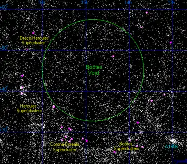 - «Filling the void - understanding the formation of the Bootes void in intergalactic space - Brief Article». Discover magazine. agosto de 1995. Archivado desde el original el 19 de noviembre de 2007. Consultado el 2 de enero de 2008.