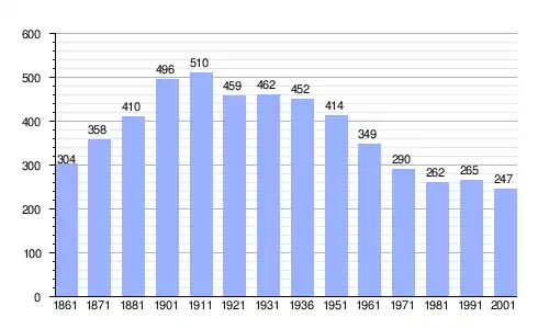 Gráfica de evolución demográfica de Vacone entre 1861 y 2001 |