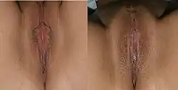 ![]() Ejemplo de vaginoplastia, antes y después de la operación. | ||