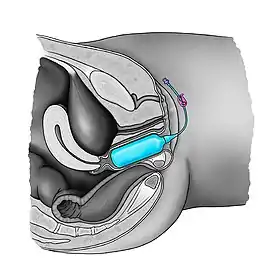 En el tratamiento de la agenesia de Müller, el procedimiento Vecchietti es una técnica quirúrgica laparoscópica que produce una vagina de dimensiones (profundidad y anchura) comparables a las de una vagina normal (ca. 8.0 cm. De profundidad).[28][29] Una pequeña esfera de plástico ("oliva") se enrosca (sutura) contra el área vaginal; los hilos se dibujan a través de la piel vaginal, a través del abdomen y a través del ombligo. Allí, los hilos se unen a un dispositivo de tracción, y luego se tensan diariamente para que la "oliva" se jale hacia adentro y estire la vagina, aproximadamente 1.0 cm. por día, creando así una vagina de aproximadamente 7,0 cm. de profundidad por 7.0 cm. de ancho, en 7 días. El tiempo medio de quirófano (OR) para la vaginoplastia Vecchietti es de aproximadamente 45 minutos; sin embargo, dependiendo de la paciente y sus indicaciones, el procedimiento puede requerir más tiempo.[30] Los resultados de la técnica Vecchietti a través del abordaje laparoscópico son comparables al procedimiento que usa la laparotomía.[31] En la hipoplasia vaginal, la vaginoplastia de tracción, como la técnica Vecchietti, parece tener las tasas de éxito más altas tanto anatómica (99%) como funcional (96%) entre los tratamientos disponibles.[32][18]
