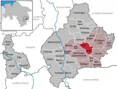 Se encuentra ubicado al sureste del estado, a poca distancia de la frontera con el estado de Sajonia-Anhalt.