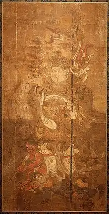 El carácter de Vaiśravaṇa se basa en la deidad hindú Kubera, pero aunque las deidades budista e hindú comparten algunas características y epítetos, cada una de ellas tiene diferentes funciones y mitos asociados. Aunque fue traído al este de Asia como una deidad budista, Vaiśravaṇa ha convertido en un personaje de la religión popular y ha adquirido una identidad que es parcialmente independiente de la tradición budista (cf. el tratamiento similar de Guanyin y Yama).