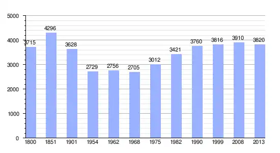Gráfica de evolución demográfica de Val-au-Perche entre 1800 y 2013 |