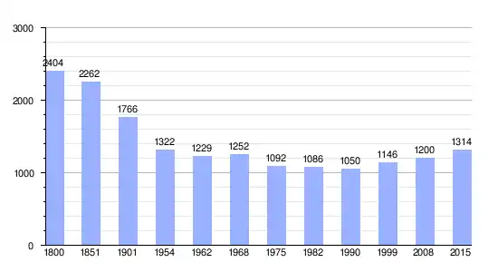 Los datos entre 1800 y 2015 son el resultado de sumar los parciales de las tres comunas que forman la nueva comuna de Val-de-Bonnieure, cuyos datos se han cogido de 1800 a 1999, para las comunas de Saint-Amant-de-Bonnieure,[4]Saint-Angeau[5]y Sainte-Colombe[6]de la página francesa EHESS/Cassini. Los demás datos se han cogido de la página del INSEE.[7]