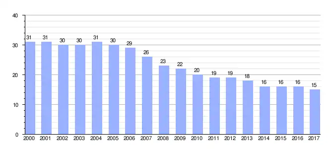 Población de derecho (2000-2010) según los censos de población del INE a 1 de enero de cada año.[1] |