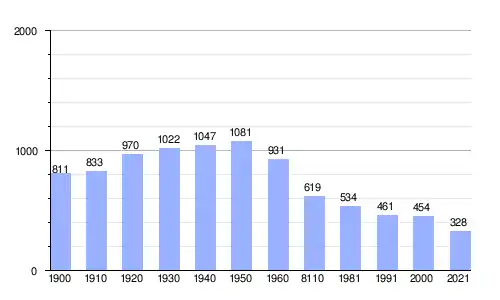 Gráfica de evolución demográfica de Valdecarros entre 1900 y 2021 |