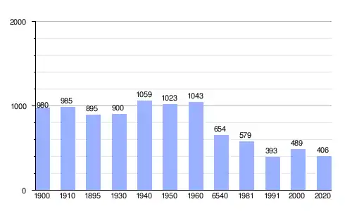 Gráfica de evolución demográfica de Valdelosa entre 1900 y 2020 |