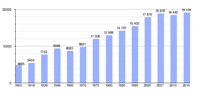 Gráfica de evolución demográfica de Valderrama entre 1903 y 2015 |