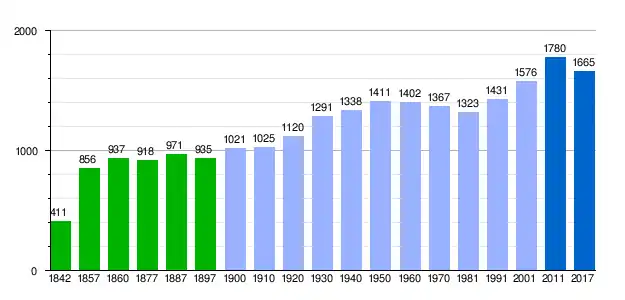 Población de derecho (1842-1897, excepto 1857 y 1860 que es población de hecho) según los censos de población del siglo XIX.[5] Población de derecho (1900-1991) o población residente (2001) según los censos de población del INE.[5] Población según el padrón municipal de 2011[6] y de 2017 del INE. |