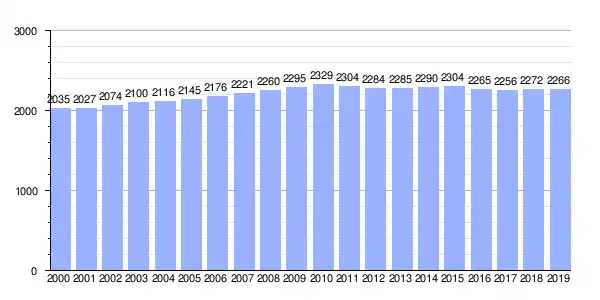 Gráfica de evolución demográfica de Valdoviño (parroquia) entre 2000 y 2019 |