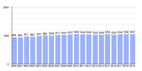 Gráfica de evolución demográfica de Valdoviño (lugar) entre 2000 y 2019 |