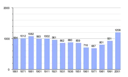 Gráfica de evolución demográfica de Valera Fratta entre 1861 y 2001 |