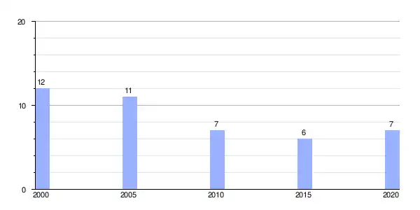 Gráfica de evolución demográfica de Vales entre 2000 y 2020 |
