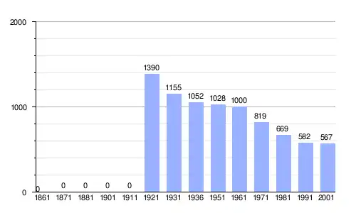 Gráfica de evolución demográfica de Valfloriana entre 1861 y 2001 |