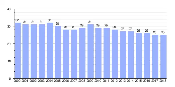 Gráfica de evolución demográfica de Valiño entre 2000 y 2018 |