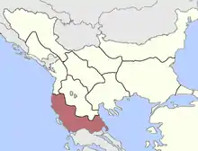 Después de la primera guerra de los Balcanes de 1912-1913 y el tratado de Londres, la parte sur del valiato, incluida Ioánina, se incorporó a Grecia.[13] Grecia también se había apoderado del norte de Epiro durante las guerras de los Balcanes, pero el tratado de Bucarest, que concluyó la segunda guerra de los Balcanes, asignó el norte de Epiro a Albania.[14]