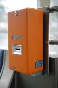 Una validadora o canceladora es un dispositivo electromecánico diseñado para validar los títulos de transporte (billetes) emitidos por una empresa de transporte público.