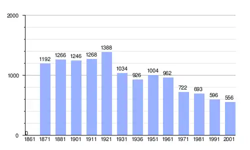 Gráfica de evolución demográfica de Vallada Agordina entre 1861 y 2001 |