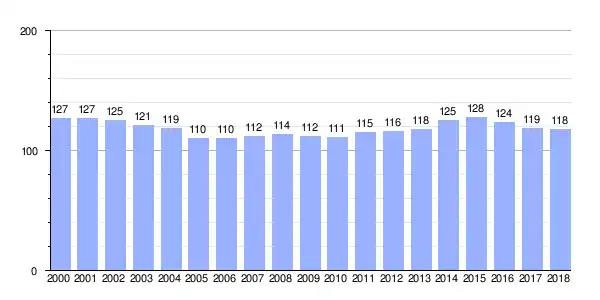 Gráfica de evolución demográfica de Valle entre 2000 y 2018 |