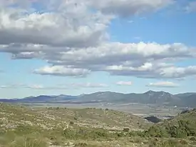 El valle de Biar propiamente dicho es lo más occidental del reino (de València) por aquella parte; tiene al norte la sierra de Agullent y al sur la de Biar, separadas por una larga legua de llanuras que de oriente a poniente se extiende legua y media entre los términos de Bañeres y Villena.