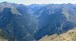 ![]() Valle de Sant Nicolau visto desde el monte Aüt. Al fondo, el Estany de Llebreta. | ||