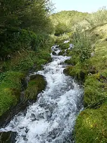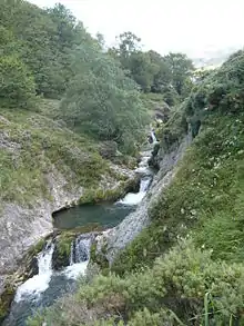 - Nacimiento del río Esla: Pese a que existen algunas controversias, histórica y tradicionalmente se considera a la fuente del Naranco en Valdosín como el nacimiento del río Esla,[14][17] y así aparece en los mapas oficiales y atlas,[4][18][19][20][21] así como en la cartografía digital tipo Google maps o ViaMichelin y en las señalizaciones viarias. Documentos medievales de los siglos XI y XII ya situaban el nacimiento del Esla en Valdeburón, en la zona de La Uña. En 1089, Domingo y su madre Flámula, donan a Sahagún un "monasterio situado en territorio de Riaño, en donde nace el Esla, que linda con Martín Díaz (o Martín Diez) y con la iglesia de San Cristóbal"… En 1110 el presbítero Domingo Vellitez, dona a Sahagún "sus heredades en tierra de Riaño; en San Cristóbal donde nace el Esla…[22] Los topónimos de Iglesia de San Cristóbal y Martín Díaz (o Martín Diez. Martín Diez era el submayordomo mayor del rey Alfonso VII de León y origen de la casa de Prado) en la montaña de Riaño se encuentran en La Uña, en la zona donde sale el camino hacia Valdosín; lo que parece indicar que hace ya más de 800 años al Esla se le reconocía un único nacimiento, en Valdosín, cerca de La Uña, del mismo modo que en la cartografía actual.