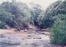 El arroyo serpentea entre cerros, entre los cuales de destaca el cerro Aguaity que separa los municipios de Caacupé y Eusebio Ayala, y desde el cual se puede observar el valle en su conjunto.