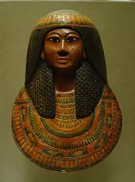 ![]() Máscara funeraria de Jonsu, hijo de Sennedyem. | ||