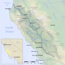 El Valle del Salinas recorre 145 km al sureste del río Salinas que desemboca cerca de Castroville y Salinas hacia King City y San Ardo. Ciudades del Valle del Salinas: Bradley, Castroville, Chualar, Gonzales, Greenfield, Jolon, King City, Salinas, San Ardo, San Lucas, Soledad y Spreckels. El Valle de Salinas se encuentra entre las cadenas montañosas de Gabilan y Santa Lucía, que bordean el Valle de Salinas al este y al oeste, respectivamente.