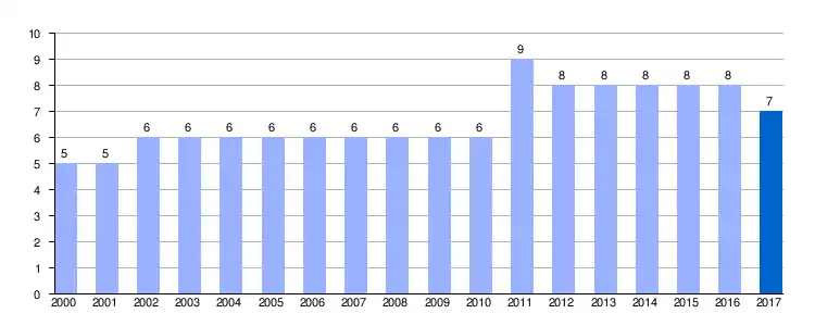 Gráfica de evolución demográfica de Vallejo de Manzanedo entre 2000 y 2017 |