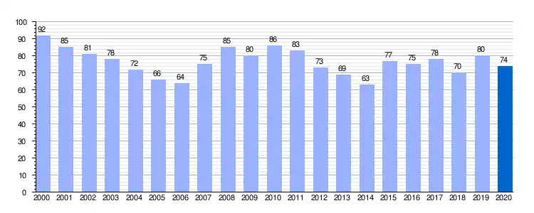 Gráfica de evolución demográfica de Vallejo de Orbó entre 2000 y 2020 |